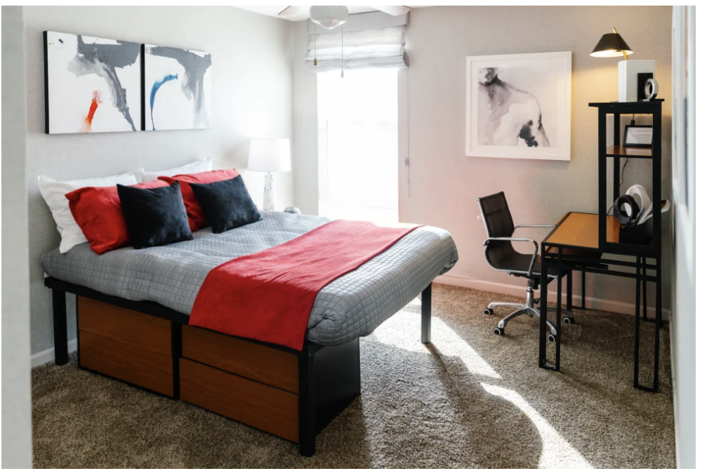 At The Scarlet, residents enjoy a gated community just one block away from Texas Tech University. Whether it is time to study, relax or get active, we offer a wide array of upscale amenities at a price students and parents love. With 24-hour access to an elite JIM fitness center and a full-service business center with a free printing, residents can take care of what is most important whenever their schedule calls for it. Residents love coming home to a stunning resort-style pool, and fully furnished apartments with full-size kitchens, walk-in closets and their own private washer and dryer. Plus, our pet-friendly living, all-inclusive rent and exceptional customer service make this the best choice for any student wanting to have everything at their fingertips to succeed.